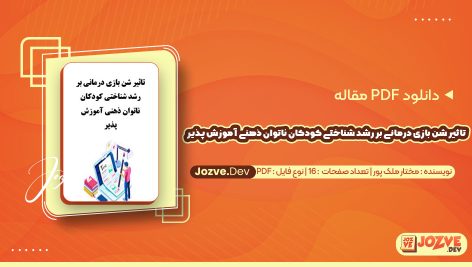 معرفی و دانلود PDF مقاله تأثیر شن بازی درمانی بر رشد شناختی کودکان ناتوان ذهنی مختار ملک پور 16 صفحه پی دی اف