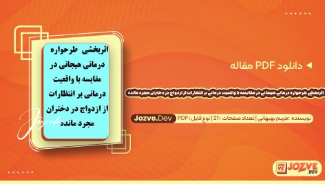 معرفی و دانلود PDF مقاله اثربخشی طرحواره درمانی هیجانی در مقایسه با واقعیت درمانی بر انتظارات از ازدواج در دختران مجرد مانده مریم بهبهانی 21 صفحه پی دی اف