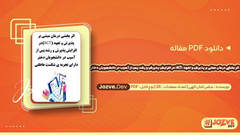 معرفی و دانلود PDF مقاله اثر بخشی ACT در افزایش پذیرش و رشد پس از آسیب برای دانشجویان دختر با شکست عاطفی عباس امان الهی 26 صفحه پی دی اف