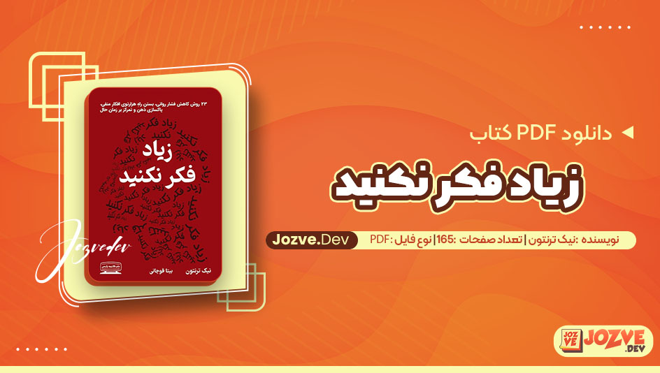 سایت جزوه دانلود PDF کتاب زیاد فکر نکنید اثر نیک ترنتون 165 صفحه پی دی اف را برای شما دوستان فراهم کرده است. مرد جوانی به نام جیمز را تصور کنید. جیمز فردی مهربان، باهوش و نسبت به خود آگاه است شاید آگاهی اش نسبت به خود کمی هم زیاد باشد. جیمز همیشه نگران چیزی است و امروز قدری دلواپس سلامتی اش است که توجه او را به خود جلب کرده است. همیشه موضوعاتی در ذهن جیمز وجود دارد که او را نگران می کند و باعث می شود بیش از حد به آنها فکر کند. جیمز اغلب خود را درگیر افکار منفی و نگرانی های بی مورد می کند که این مسئله باعث می شود آرامش و شادی او را به خطر بیندازد. با این حال، جیمز فردی هوشمند است و می داند که این افکار و نگرانی ها باید کنترل شوند تا بتواند زندگی بهتری داشته باشد. با سایت جزوه دانلود همراه باشید.