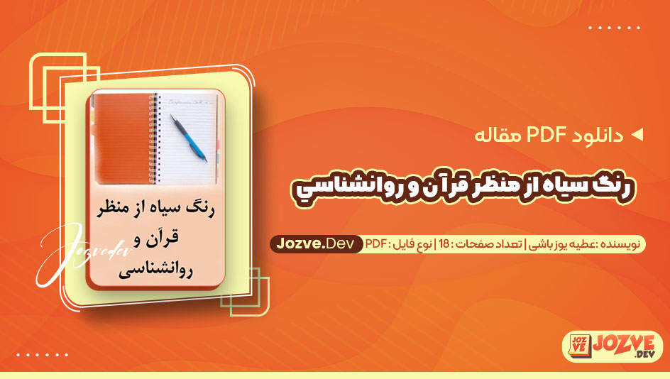 سایت جزوه دانلود PDF مقاله رنگ سياه از منظر قرآن و روانشناسي عطیه یوز باشی 18  صفحه پی دی اف را برای شما دوستان فراهم کرده است رنگ سیاه در فرهنگ‌ها و ادیان مختلف بارهای متفاوتی دارد. در قرآن کریم، رنگ‌ها به عنوان نمادهایی از معانی عمیق وجود دارند و سیاه نیز از این قاعده مستثنی نیست. در روانشناسی، رنگ‌ها می‌توانند تأثیرات عاطفی و روانی خاصی بر انسان‌ها بگذارند. به بررسی مفهوم رنگ سیاه از دیدگاه قرآن و روانشناسی می‌پردازیم. با سایت جزوه همراه باشید.