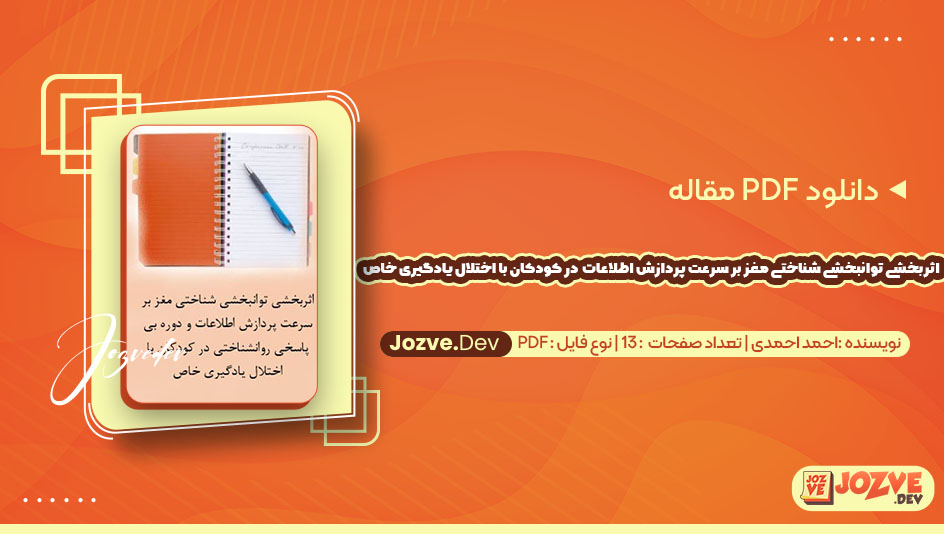 PDF مقاله اثربخشی توانبخشی شناختی مغز بر سرعت پردازش اطلاعات و دوره بی پاسخی روانشناختی در کودکان با اختلال یادگیری خاص احمد احمدی