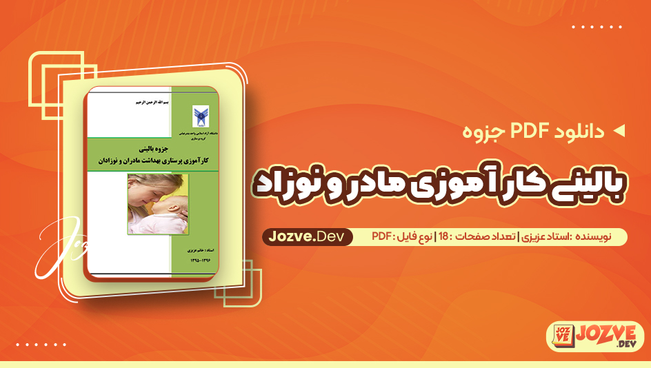 سایت جزوه دانلود PDF جزوه بالینی کار آموزی مادر و نوزاد استاد عزیزی 18 صفحه پی دی اف را برای شما دوستان فراهم کرده است. مراقبت‌های بالینی در دوره بارداری، زایمان و پس از زایمان نقش حیاتی در حفظ سلامت مادر و نوزاد دارد. در این دوره، توجه به وضعیت جسمانی و روانی مادر و نوزاد از اهمیت بالایی برخوردار است و مراقبت‌های دقیق بالینی به پیشگیری از مشکلات احتمالی کمک می‌کند. با سایت جزوه همراه باشید.