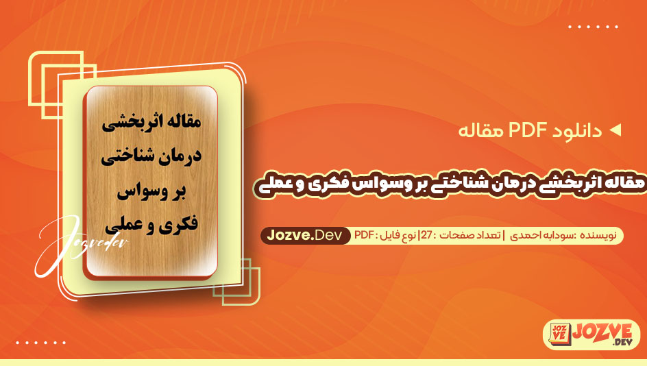 معرفی و دانلود PDF مقاله اثربخشی درمان شناختی بر وسواس فکری و عملی سودابه احمدی 27 صفحه پی دی اف
