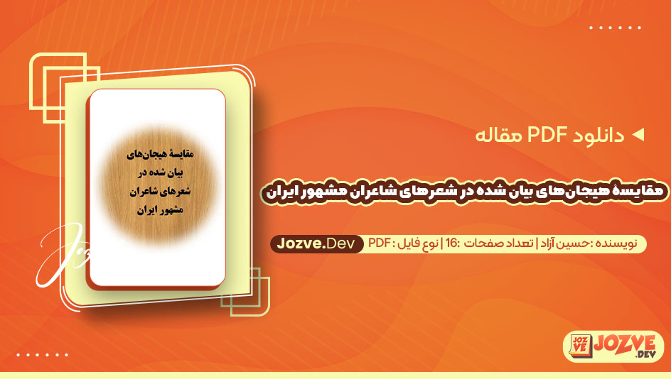 سایت جزوه دانلود PDF مقاله مقایسۀ هیجانهای بیان شده در شعرهای شاعران مشهور ایران حسین آزاد ۱۶ صفحه پی دی اف را برای شما دوستان فراهم کرده است مقاله مقایسه هیجانهای بیان شده در شعرهای شاعران مشهور ایران به بررسی احساسات و عواطفی میپردازد که در آثار این شاعران به تصویر کشیده شده است. شاعران ایرانی از جمله حافظ، سعدی، فروغ فرخزاد و شمس لنگرودی به نیازهای عاطفی بشر توجه داشته و تجربیات زندگی را بهگونهای بیان کردهاند که خواننده بتواند با آنها همذاتپنداری کند. هر یک از این شاعران از زبانی غنی و تصاویر زیبا برای انتقال احساسات خود بهره میبرند. با سایت جزوه همراه باشید.