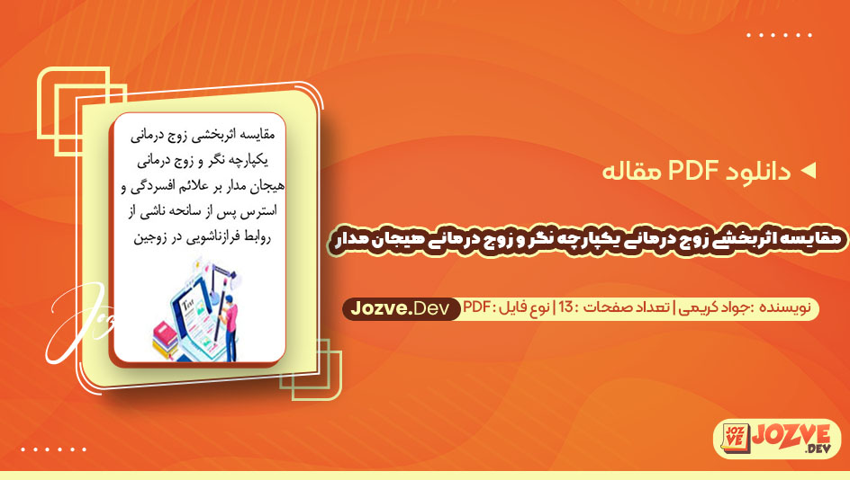 سایت جزوه دانلود PDF مقاله مقایسه اثربخشی زوج درمانی یکپارچه نگر و زوج درمانی هیجان مدار جواد کریمی 13 صفحه پی دی اف را برای شما دوستان فراهم کرده است مقالهای که به مقایسه اثربخشی زوج درمانی یکپارچه نگر و زوج درمانی هیجان مدار میپردازد، نگاهی جامع به هر دو رویکرد درمانی دارد. زوج درمانی یکپارچه نگر، با تلفیق تکنیکها و نظریههای مختلف، سعی در درک و حل مسائل زوجها دارد. این رویکرد بر مبنای نیازها و مشکلات خاص هر زوج و موقعیتهای منحصر به فرد آنها طراحی میشود و از ابزارها و استراتژیهای متنوعی بهره میبرد. با سایت جزوه همراه باشید.