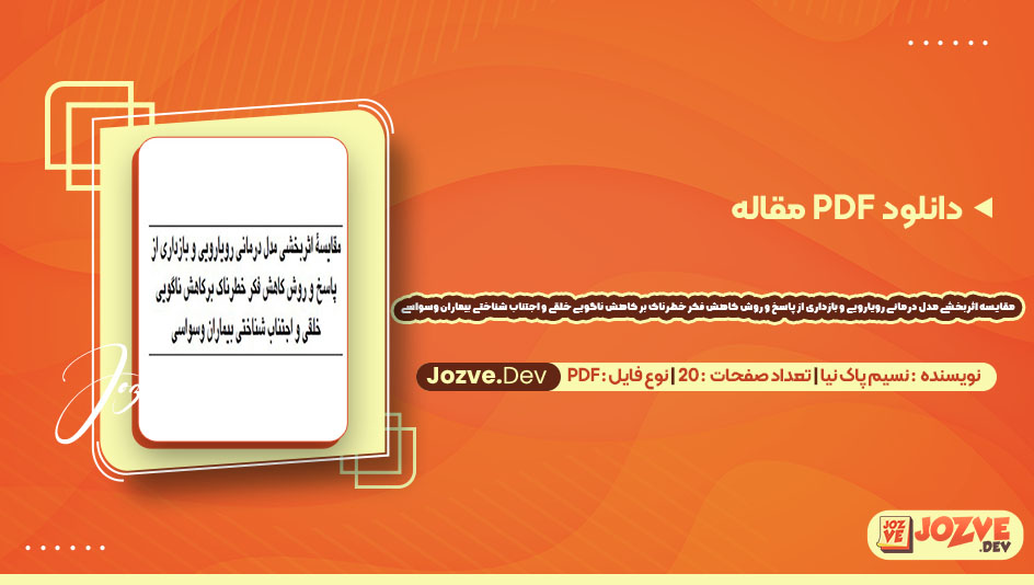 سایت جزوه دانلود PDF مقاله مقایسه اثربخشی مدل درمانی رویارویی و بازداری از پاسخ و روش کاهش فکر خطرناک بر کاهش ناگویی خلقی و اجتناب شناختی بیماران وسواسی نسیم پاک نیا 20 صفحه پی دی اف را برای شما دوستان فراهم کرده است. مقاله ای که به بررسی مقایسه اثربخشی مدل درمانی رویارویی و بازداری از پاسخ و روش کاهش فکر خطرناک بر کاهش ناگویی خلقی و اجتناب شناختی بیماران وسواسی نوشته شده است، به یکی از چالش های مهم در درمان اختلال وسواس فکری-عملی می پردازد. اختلال وسواس، که با افکار و رفتارهای تکراری مشخص می شود، می تواند به شدت بر کیفیت زندگی افراد تأثیر بگذارد. این تحقیق به دنبال شناسایی و مقایسه روش های درمانی مختلف برای بهبود وضعیت بیماران و کاهش علائم مرتبط با این اختلال است. با سایت جزوه همراه باشید.