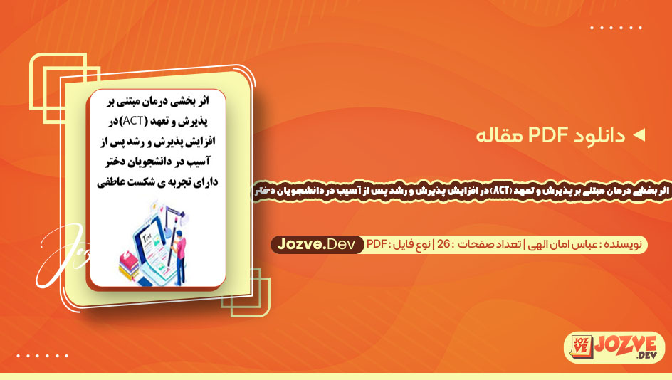 📕نام مقاله: اثر بخشی درمان مبتنی بر پذیرش و تعهد (ACT)در افزایش پذیرش و رشد پس از آسیب در دانشجویان دختر دارای تجربه ی شکست عاطفی