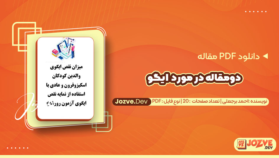 سایت جزوه دانلود PDF مقاله دو مقاله در مورد ایگو احمد برجعلی 20 صفحه پی دی اف را برای شما دوستان فراهم کرده است احمد برجعلی یکی از نویسندگان معاصر ایرانی است که آثارش تأثیرات عمیقی بر ادبیات و جامعه معاصر داشته است. او به بیان موضوعات اجتماعی و روانشناختی در آثارش میپردازد و از زبانی ساده اما غنی استفاده میکند. این ویژگیها باعث میشود که خوانندگان به راحتی با شخصیتها و داستانهای او ارتباط برقرار کنند. با سایت جزوه همراه باشید.