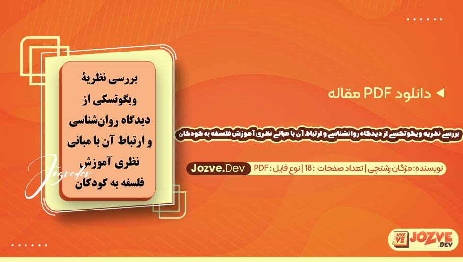 PDF مقاله بررسی نظریه ویگوتکسی از دیدگاه روانشناسی و ارتباط آن با مبانی نظری آموزش فلسفه به کودکان مژگان رشتچی