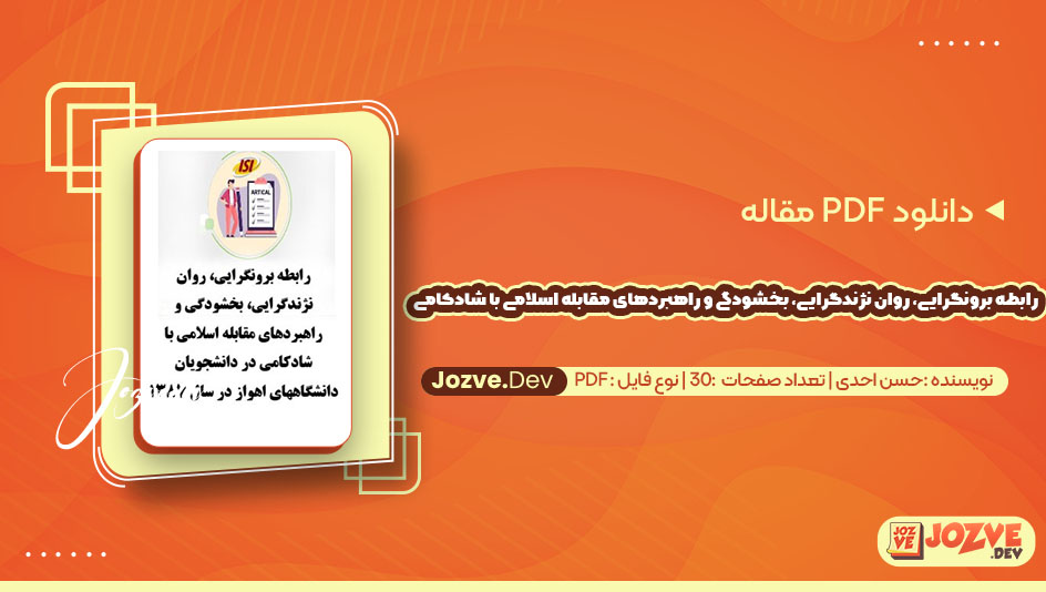 پی دی اف مقاله ، رابطه برونگرایی، روان نژندگرایی، بخشودگی و راهبردهای مقابله اسلامی با شادکامی در دانشجویان دانشگاههای اهواز در سال 1387 حسن احدی
