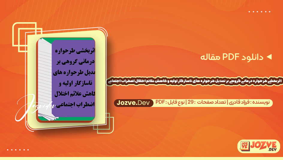 سایت جزوه دانلود PDF مقاله اثربخشی طرحواره درمانی گروهی بر تعدیل طرحواره های ناسازگار اولیه و کاهش علائم اختلال اضطراب اجتماعی فرزاد قادری 29 صفحه پی دی اف را برای شما دوستان فراهم کرده است مقاله فرزاد قادری به بررسی اثربخشی طرحواره درمانی گروهی بر تعدیل طرحواره های ناسازگار اولیه و کاهش علائم اختلال اضطراب اجتماعی می پردازد. در این مطالعه، فرضیه های اصلی بر این اساس استوار است که تغییر در طرحواره های ناسازگار می تواند به بهبود علائم اضطراب اجتماعی کمک کند. طرحواره های ناسازگار اولیه، نگرش ها و الگو های فکری هستند که می توانند به مشکلات روانی منجر شوند. با سایت جزوه همراه باشید.