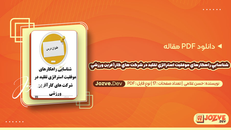 مقاله حسن غلامی به بررسی راهکارهای موفقیت استراتژی تقلید در شرکتهای کارآفرین ورزشی میپردازد. نویسنده با تحلیل الگوهای مختلف، به شناسایی عوامل موثر بر این استراتژی میپردازد و نحوه پیادهسازی آن در بازار رقابتی ورزش را بررسی میکند. از جمله نکات کلیدی مقاله، اهمیت نوآوری در کنار تقلید، نیاز به شناخت بازار و توانمندیهای سازمانی است. این مقاله میتواند به کارآفرینان ورزشی کمک کند تا با استفاده از تجربیات موفق دیگران، راهکارهای موثری را در پیش بگیرند.