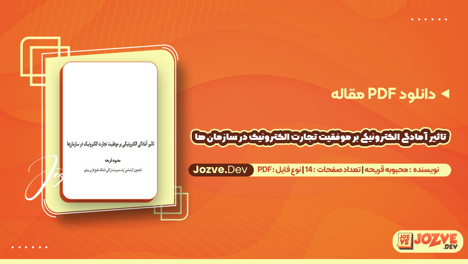 مقاله تاثیر آمادگی الکترونیکی بر موفقیت تجارت الکترونیک در سازمان ها محبوبه قریحه مقاله خواندنی و جذاب از دسته مقاله های اقتصاد و مدیریت است. اگر از این مقاله جذاب لذت برده اید گزینه های دیگر را برای مطالعه به شما پیشنهاد میکنم.