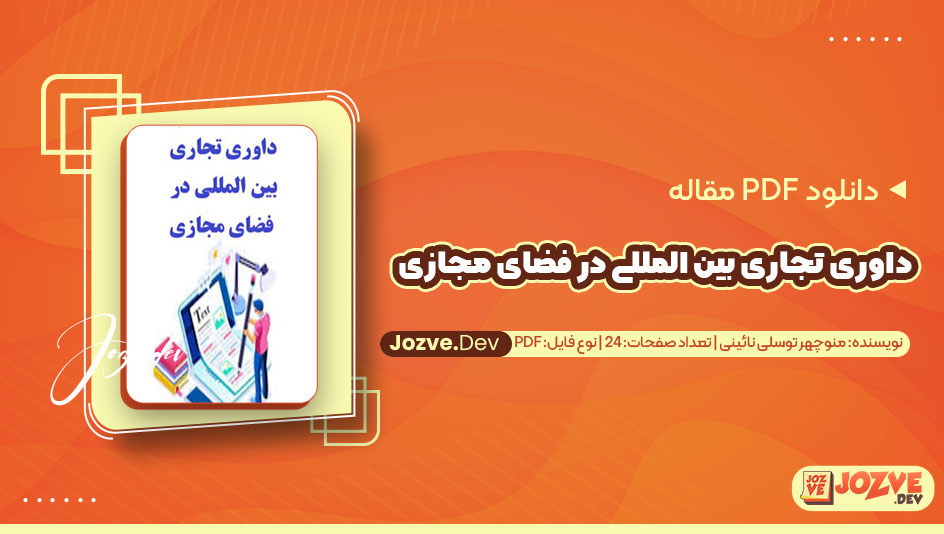 سایت جزوه دانلود PDF مقاله داوري تجاري بين المللي در فضاي مجازي منوچهر توسلی نائینی 24 صفحه پی دی اف را برای شما دوستان فراهم کرده است مقالهای درباره داوری تجاری بینالمللی در فضای مجازی به بررسی چالشها و فرصتهای این نوع داوری میپردازد. با گسترش تجارت الکترونیک و افزایش معاملات بینالمللی در فضای آنلاین، نیاز به سازوکارهای مؤثری برای حل و فصل اختلافات بوجود آمده است. داوری تجاری، به عنوان یک گزینه جایگزین برای دعاوی قضائی، توانایی حل مسائل پیچیده با سرعت و کارایی بیشتری را دارد. با سایت جزوه همراه باشید.