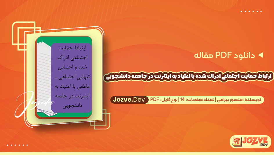 📕نام مقاله: ارتباط حمایت اجتماعی ادراك شده با اعتیاد به اینترنت در جامعه دانشجویی