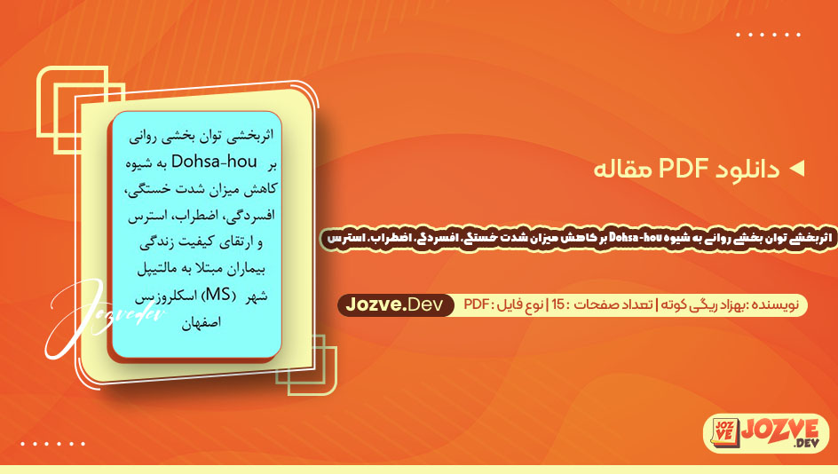 PDF مقاله اثربخشی توان بخشی روانی به شیوه Dohsa-hou بر کاهش میزان شدت خستگی، افسردگی، اضطراب، استرس و ارتقای کیفیت زندگی بیماران مبتلا به مالتیپل اسکلروزیس (MS) شهر اصفهان بهزاد ریگی کوته