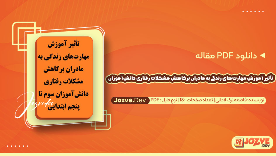 📕نام مقاله: تأثیر آموزش مهارتهای زندگی به مادران برکاهش مشکلات رفتاری دانشآموزان سوم تا پنجم ابتدایی