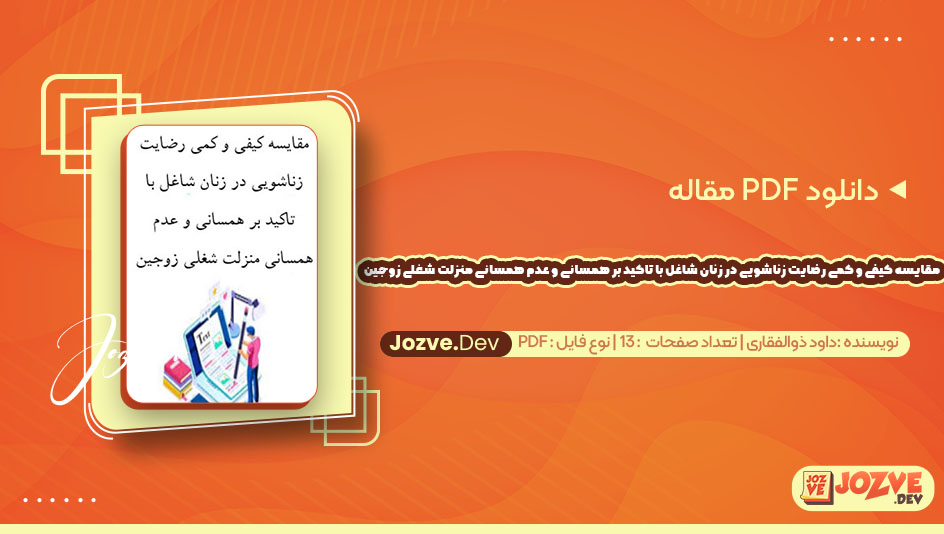 معرفی و دانلود PDF مقاله مقایسه کیفی و کمی رضایت زناشویی در زنان شاغل داود ذوالفقاری 13 صفحه پی دی اف