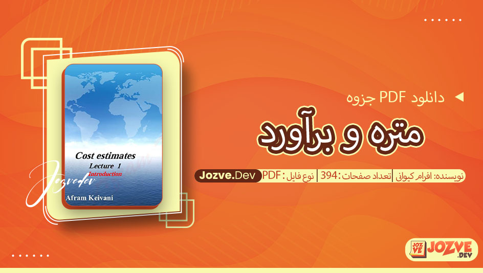 سایت جزوه دانلود PDF جزوه متره و برآورد افرام کیوانی 394 صفحه پی دی اف را برای شما دوستان فراهم کرده است.جزوه “متره و برآورد” نوشته دکتر افرام کیوانی به بررسی اصول و مبانی متره و برآورد در پروژه‌ های عمرانی می‌ پردازد. این جزوه به‌ عنوان یک منبع آموزشی مهم، به دانشجویان و مهندسان عمران کمک می‌ کند تا توانایی‌ های لازم برای محاسبه و برآورد هزینه‌ ها و مواد لازم برای اجرای پروژه‌ های ساختمانی را کسب کنند.با سایت جزوه همراه باشید.