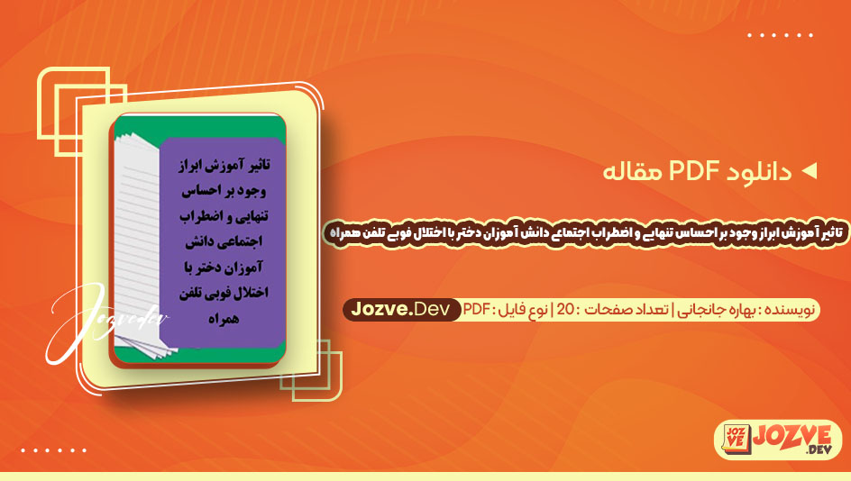 پی دی اف مقاله تاثیر آموزش ابراز وجود بر احساس تنهایی و اضطراب اجتماعی دانش آموزان دختر با اختلال فوبی تلفن همراه بهاره جانجانی