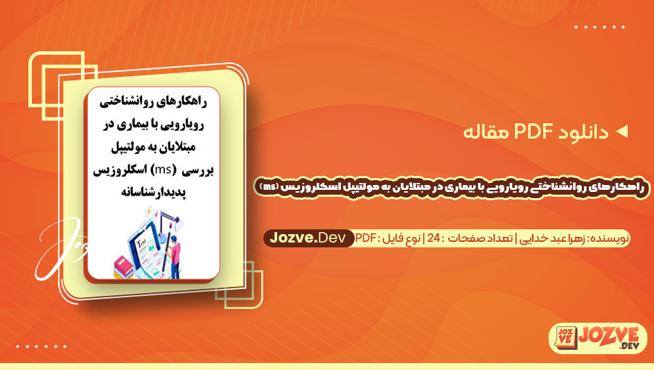 سایت جزوه دانلود PDF مقاله راهکارهای روانشناختی رویارویی با بیماری در مبتلایان به مولتیپل اسکلروزیس بررسی پدیدار شناسانه زهرا عبد خدایی 24 صفحه پی دی اف را برای شما دوستان فراهم کرده است مقاله “راهکارهای روانشناختی رویارویی با بیماری در مبتلایان به مولتیپل اسکلروزیس” اثر زهرا عبد خدایی، به بررسی چالشها و استراتژیهای روانشناختی برای مدیریت این بیماری میپردازد. مولتیپل اسکلروزیس (MS) به عنوان یک بیماری خودایمنی مزمن، تأثیر عمیقی بر زندگی روزمره افراد دارد و نیازمند رویکردهای جامع برای مقابله با آن است. با سایت جزوه همراه باشید.
