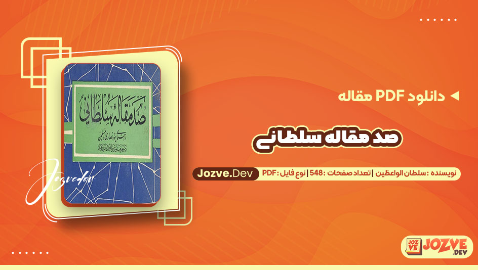 سایت جزوه دانلود PDF مقاله صد مقاله سلطانی سلطان الواعظین 543 صفحه پی دی اف را برای شما دوستان فراهم کرده است. مقاله «صد مقاله سلطانی» نوشته سلطان الواعظین، یکی از آثار مهم ادبیات معاصر فارسی است که به بررسی مسائل اجتماعی، فرهنگی و مذهبی می پردازد. این اثر به صورت مجموعه ای از مقالات کوتاه و خواندنی تدوین شده است که هر کدام به موضوعات مختلفی از جمله اخلاق، سیاست و تاریخ اشاره دارد. سلطانی، با نگاهی انتقادی به وضعیت جامعه، سعی دارد تا خواننده را به تفکر و تامل در مورد مسائل پیرامونش وا دارد. با سایت جزوه همراه باشید.