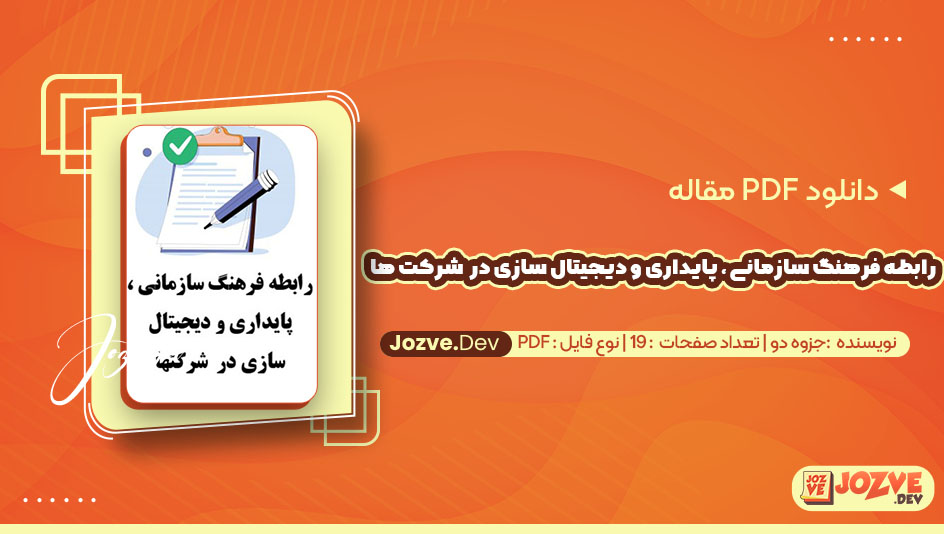 معرفی و دانلود PDF مقاله رابطه فرهنگ سازمانی،پایداری و دیجیتال سازی در شرکت ها جزوه دو (انگلیسی) 19 صفحه پی دی اف