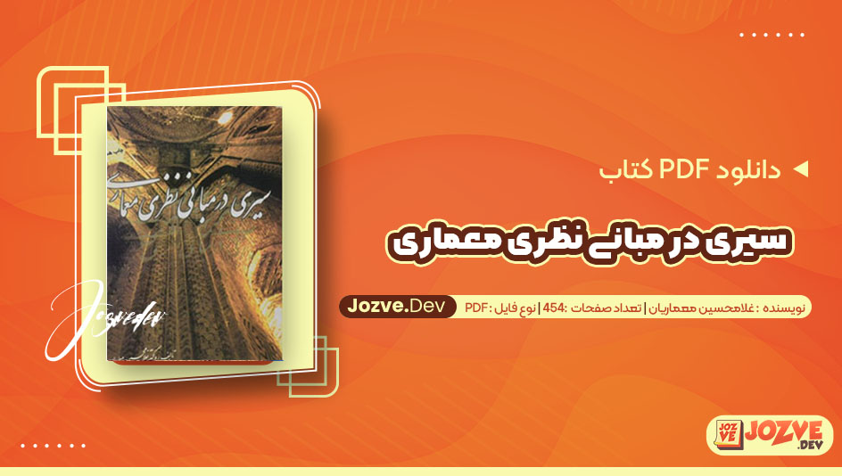 سایت جزوه دانلود پی دی اف کتاب سیری در مبانی نظری معماری غلامحسین معماریان 454 صفحه پی دی اف را برای شما دوستان فراهم کرده است. کتاب «سیری در مبانی نظری معماری» اثر دکتر غلامحسین معماریان، یکی از منابع معتبر و ارزشمند در حوزه ی معماری و مطالعات نظری معماری در ایران است. این کتاب با نگاهی عمیق و تحلیلی به مبانی و اصول نظری معماری، به یکی از منابع کلیدی برای دانشجویان، پژوهشگران و علاقه مندان به این حوزه تبدیل شده است. با سایت جزوه همراه باشید.
