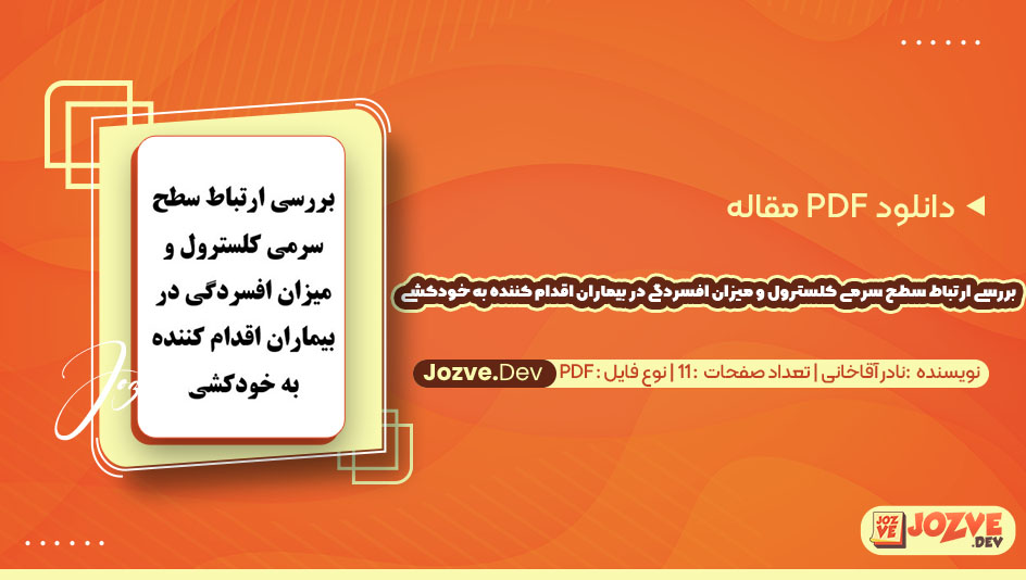معرفی و دانلود PDF مقاله بررسی ارتباط سطح سرمی کلسترول و میزان افسردگی در بیماران اقدام کننده به خودکشی نادر آقاخانی 11 صفحه پی دی اف