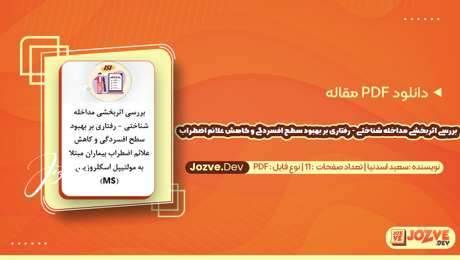 PDF مقاله بررسی اثربخشی مداخله شناختی – رفتاری بر بهبود سطح افسردگی و کاهش علائم اضطراب بیماران مبتلا به مولتیپل اسکلروزیس (MS) سعید اسدنیا