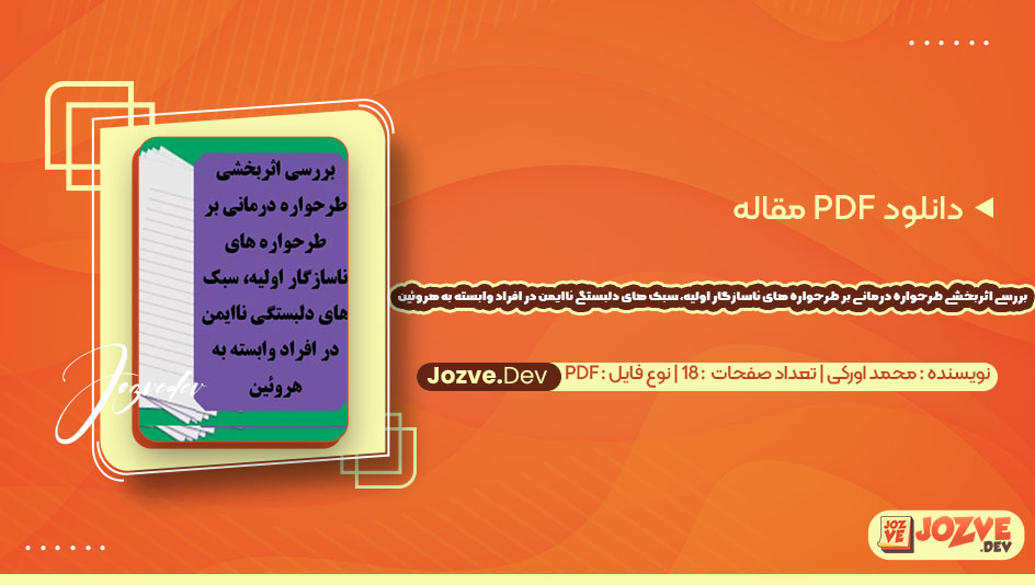 PDF مقاله بررسی اثربخشی طرحواره درمانی بر طرحواره های ناسازگار اولیه، سبک های دلبستگی ناایمن در افراد وابسته به هروئین محمد اورکی