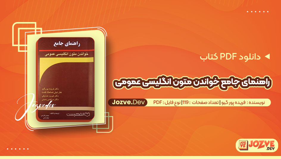 سایت حزوه دانلود PDF کتاب راهنمای جامع خواندن متون انگلیسی عمومی فریده پور گیو 119 صفحه پی دی اف را برای شما دوستان فراهم کرده است. کتاب راهنمای جامع خواندن متون انگلیسی عمومی، تالیف فریده پورگیو، یکی از منابع ارزشمند برای افرادی است که به دنبال ارتقای مهارت های خواندن و درک متون انگلیسی خود هستند. این کتاب با رویکردی جامع و کاربردی، به شما کمک می کند تا بتوانید انواع مختلف متون انگلیسی را با دقت و سرعت بیشتری بخوانید و درک کنید. با سایت جزوه همراه باشید.
