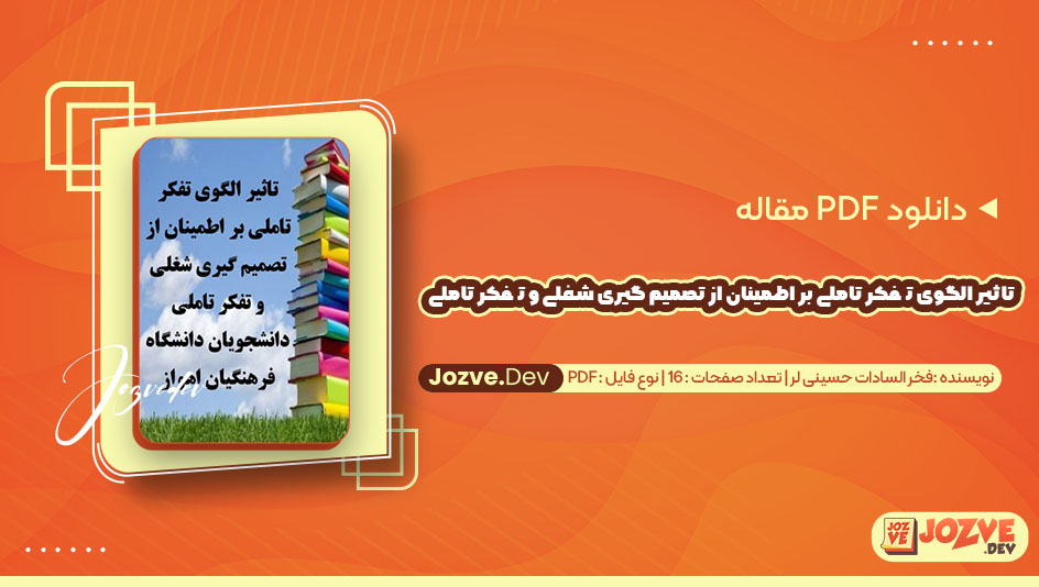 معرفی و دانلود PDF مقاله تأثیر الگوی تفکر تاملی بر اطمینان و تصمیم‌گیری شغلی فخر السادات حسینی لر 16 صفحه پی دی اف
