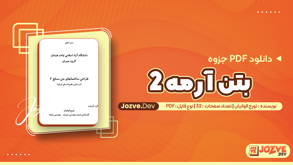 سایت جزوه دانلود PDF جزوه بتن آرمه ۲ الوانیان 32 صفحه پی دی اف را برای شما دوستان فراهم کرده است. جزوه بتن آرمه ۲ نوشته الوانیان به مسائل پیشرفته‌تری در زمینه طراحی و تحلیل سازه‌های بتنی می‌پردازد. در این درس مباحث مختلفی از جمله طراحی تیرهای بتنی، ستون‌ها، دال‌ها و سازه‌های مرکب بتنی با توجه به بارهای مختلف مورد بحث قرار می‌گیرد. با سایت جزوه همراه باشید.