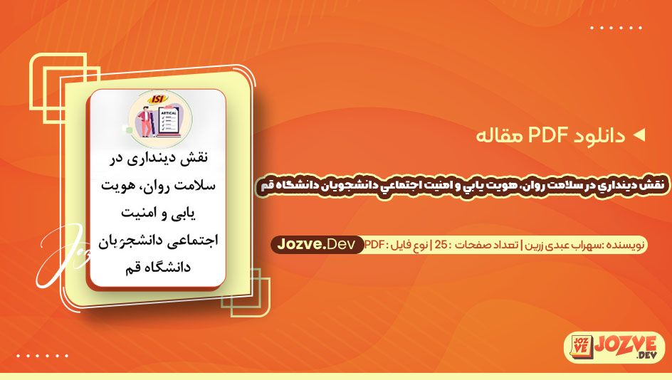 معرفی و دانلود PDF مقاله نقش دينداري در سلامت روان، هويت يابي و امنيت اجتماعي دانشجويان دانشگاه قم سهراب عبدی زرین 25 صفحه پی دی اف