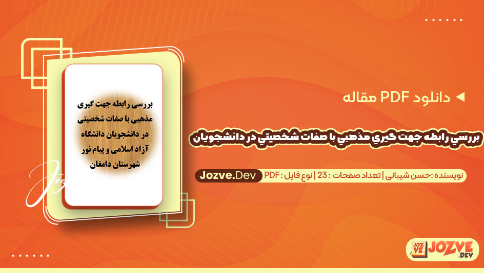 PDF مقاله بررسي رابطه جهت گيري مذهبي با صفات شخصيتي در دانشجويان دانشگاه آزاد اسلامي و پيام نور شهرستان دامغان حسن شیبانی