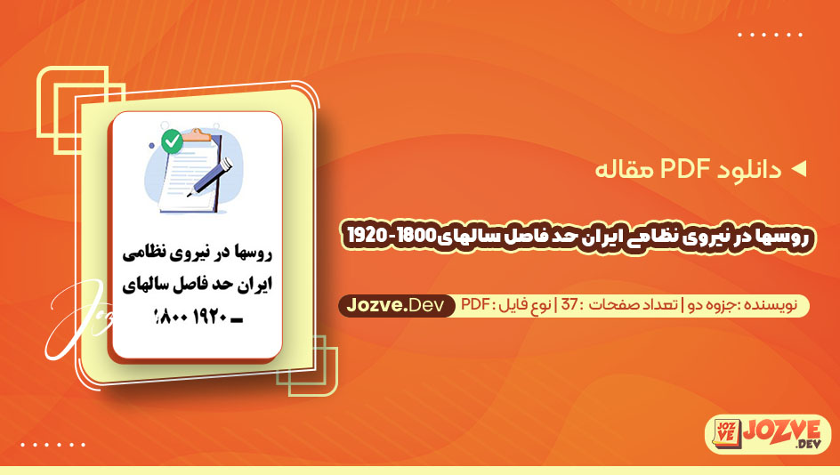 سایت جزوه دانلود PDF مقاله روسها در نیروی نظامی ایران حد فاصل سالهای 1800 ـ 1920 جزوه دو 37 صفحه پی دی اف را برای شما دوستان فراهم کرده است مقالهای درباره تأثیر روسها بر نیروی نظامی ایران در فاصله سالهای 1800 تا 1920، به بررسی نقش مهم و تأثیرگذار این کشور بر ساختار و تحولات نظامی ایران میپردازد. در این دوره، ایران با چالشهای داخلی و خارجی متعددی روبهرو بود که نیاز به یک نیروی نظامی کارآمد و مدرن را به وضوح نمایان میساخت. با سایت جزوه همراه باشید.