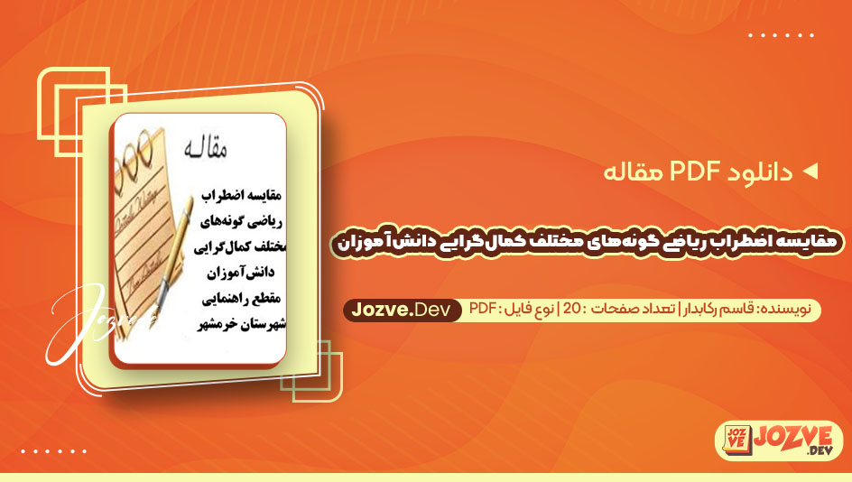 مقاله مقایسه اضطراب ریاضی گونههای مختلف کمالگرایی دانشآموزان مقطع راهنمایی شهرستان خرمشهر قاسم رکابدار