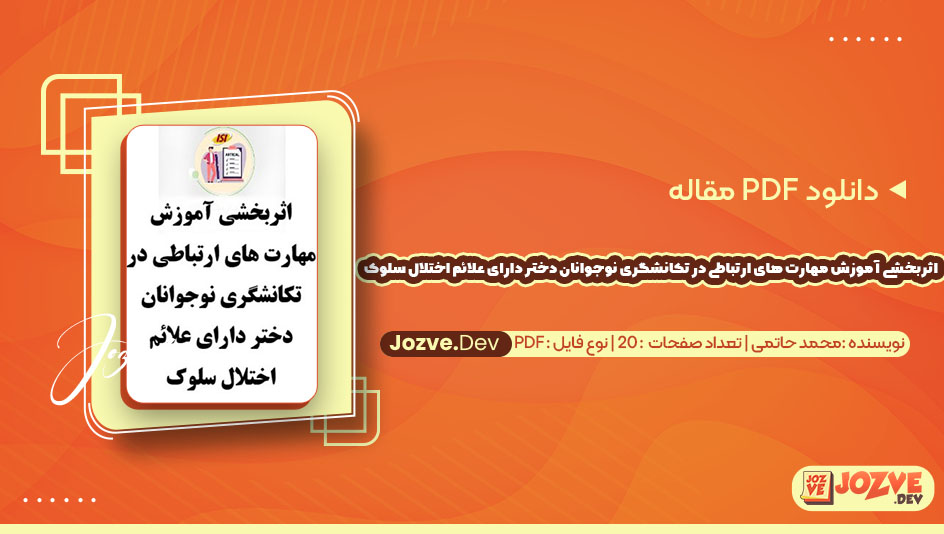 PDF مقاله اثربخشی آموزش مهارت های ارتباطی در تکانشگری نوجوانان دختر دارای علائم اختلال سلوک محمد حاتمی