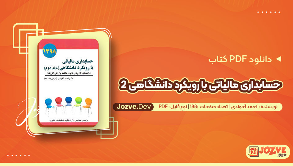 سایت حزوه دانلود PDF کتاب حسابداری مالیاتی با رویکرد دانشگاهی 2 احمد آخوندی 188 صفحه پی دی اف را برای شما دوستان فراهم کرده است. کتاب حسابداری مالیاتی با رویکرد دانشگاهی (جلد دوم) اثر احمد آخوندی، یکی از منابع جامع و کاربردی در حوزه حسابداری مالیاتی است که به صورت ویژه برای دانشجویان رشته حسابداری و نیز متخصصان این حوزه تالیف شده است. این کتاب با رویکردی دانشگاهی و با بهره‌ گیری از آخرین تغییرات قوانین مالیاتی، به بررسی مفاهیم پیچیده حسابداری مالیاتی پرداخته و با ارائه مثال‌ های عملی، درک عمیق‌ تری از این موضوع را برای خواننده فراهم می‌ آورد. با سایت جزوه همراه باشید.