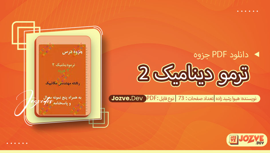 سایت جزوه دانلود PDF جزوه ترمو دینامیک 2 هیوا رشید زاده 73 صفحه پی دی اف را برای شما دوستان فراهم کرده است.جزوه ترمودینامیک 2 نوشته هیوا رشیدزاده به بررسی عمیق تر مفاهیم و اصول ترمودینامیک در سطح پیشرفته تر می پردازد. این جزوه به عنوان یک منبع آموزشی برای دانشجویان مهندسی مکانیک و دیگر رشته های مرتبط طراحی شده است و به تحلیل سیستم های حرارتی، فرآیند های ترمو دینامیکی و قانون های اساسی ترمو دینامیک می پردازد.با سایت جزوه همراه باشید.
