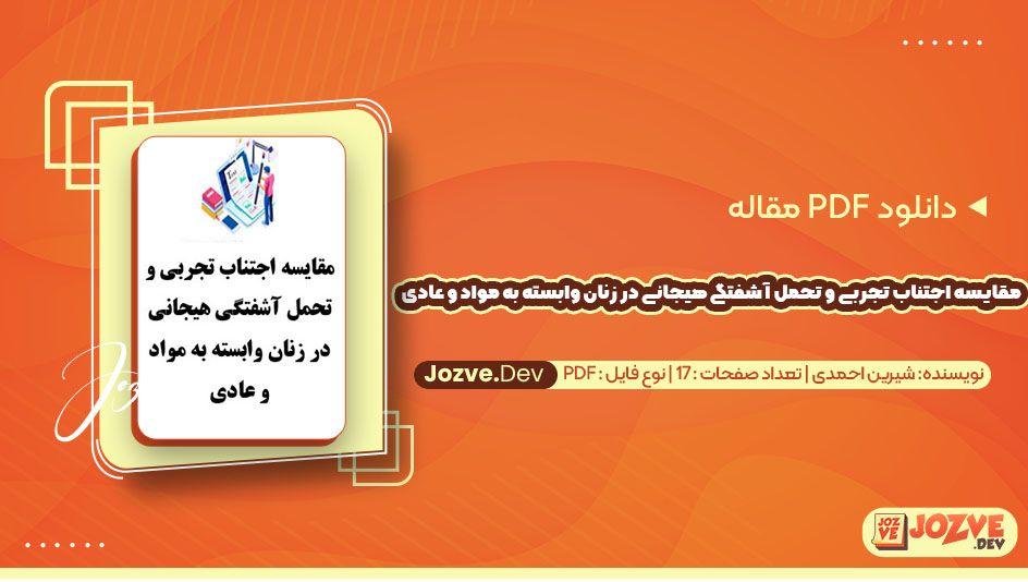سایت جزوه دانلود PDF مقاله مقایسه اجتناب تجربی و تحمل آشفتگی هیجانی در زنان وابسته به مواد و عادی شیرین احمدی 17 صفحه پی دی اف را برای شما دوستان فراهم کرده است مقاله “مقایسه اجتناب تجربی و تحمل آشفتگی هیجانی در زنان وابسته به مواد و عادی” به بررسی دو مولفه روانشناختی مهم در زنان می‌پردازد. اجتناب تجربی به انکار یا فرار از تجارب هیجانی ناخوشایند اشاره دارد، در حالی که تحمل آشفتگی هیجانی به توانایی فرد در مواجهه و مدیریت این احساسات مربوط می‌شود. این مطالعه با تأکید بر تفاوت‌های موجود در این دو گروه، تلاش دارد تا درک بهتری از چگونگی تأثیر وابستگی به مواد بر این مولفه‌ها ارائه دهد. با سایت جزوه همراه باشید.