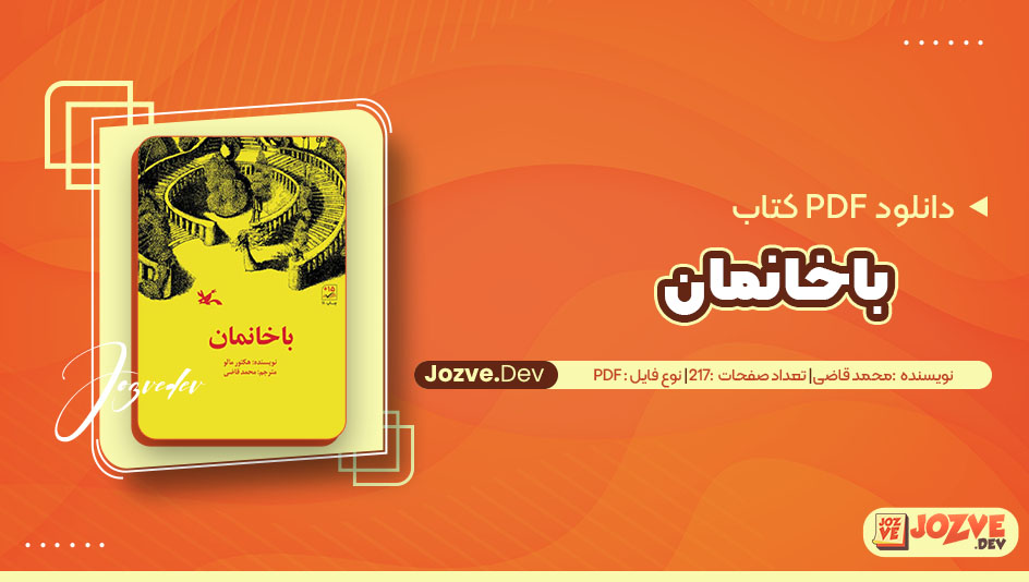 سایت جزوه دانلود PDF کتاب باخانمان محمد قاضی 217 صفحه پی دی اف را برای شما دوستان فراهم کرده است. کتاب “باخانمان” اثر محمد قاضی، یک رمان اجتماعی و عاطفی است که به بررسی زندگی و چالش های انسانی در بستر جامعه ای متلاطم می پردازد. داستان حول محور شخصیت های اصلی می چرخد که هر کدام با مشکلات و بحران های خاص خود دست و پنجه نرم می کنند. قاضی با نگاهی عمیق و واقع نگر به روابط انسانی، احساسات و دلتنگی های شخصیت ها را به تصویر می کشد و خواننده را به تفکر درباره زندگی و سرنوشت انسان ها وا می دارد. با سایت جزوه همراه باشید